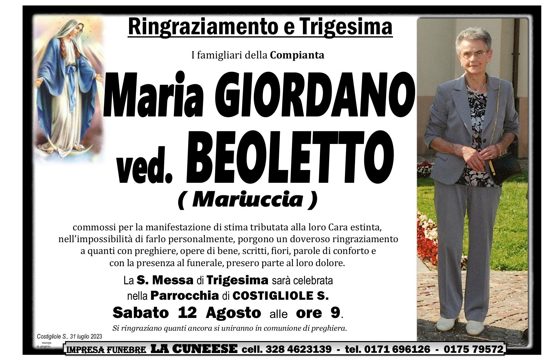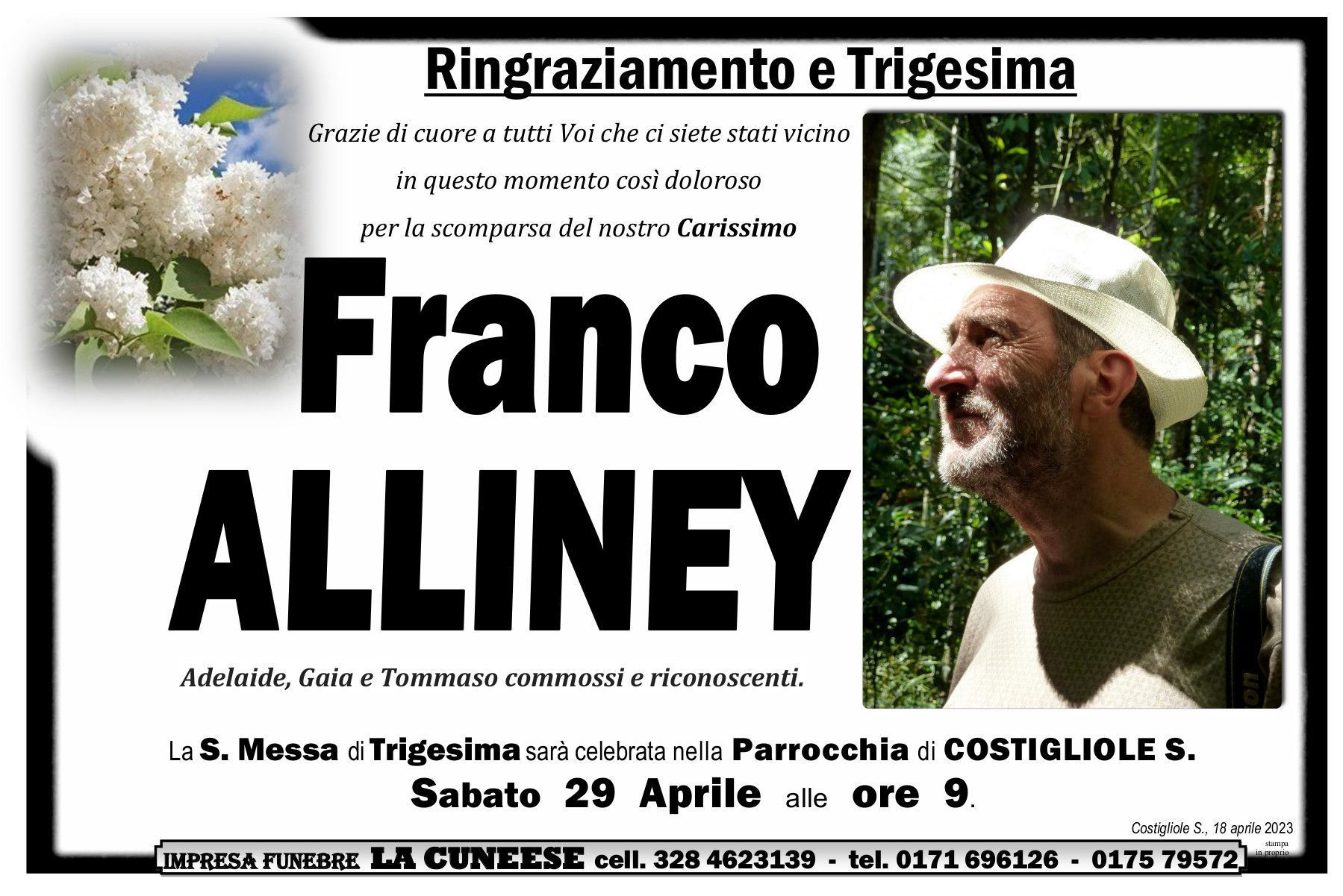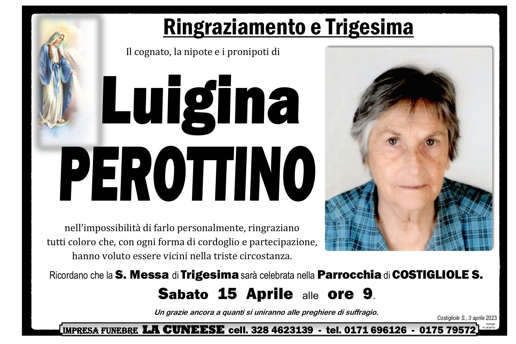 La pubblicazione dei ringraziamenti è parte importante del servizio funebre.